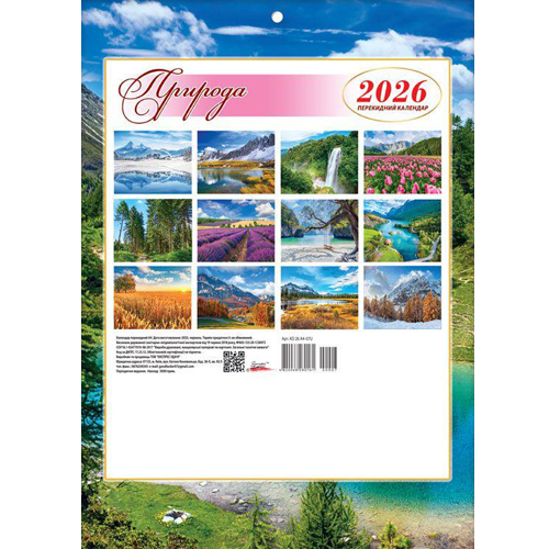 Перекидний календар 2026 формату А4 (на скобі) «Природа» KD26A4-07U